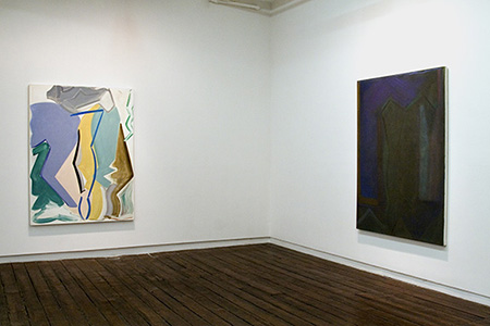 The paintings have at once a centrifugal and centripetal existence: several overemphasize and restate the certainty of their external delimitations, while conversely alluding to their possible status as a detail, an excerpt. The repetition and shifting of motifs across multiple paintings construct modes of framing, and place an image “into infinity.” Each painting reconstitutes a fragment, by focusing in on a piece and organizing a new whole, but one that is noted for its dissimilarity and non-mimetic character. The operation of abstraction is here tied to a process of un-naming. The paintings seek to find an image of a sensation that is experienced before its cause can be determined, before a name seals its identity.
