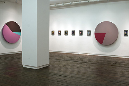 The works in this exhibition are based on pie charts derived from information provided by Gallup.com polls, a popular method for determining current nation-wide sentiments and opinions.