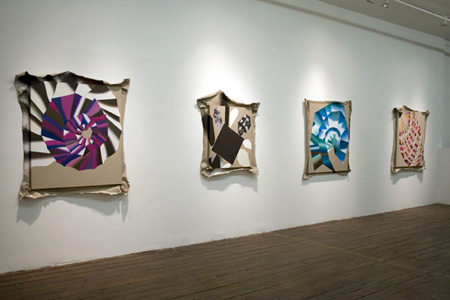 The artist is included in the new Phaidon publication Painting Abstraction: New Elements in Abstract Painting by Bob Nickas. Regarding the work Nickas writes "Consider [Fisher's] work as it hangs in the gallery: the painted surface, the color, the hard edge of the image, the straight edge of the stretcher, and the irregular folds of linen. Our gaze moves from the flatness of the wall to the contours of the draped material to the flatness of the painting's surface. Here, the entire painting is the object, but with heightened contrast. There is play between the smooth surface of color at the service of the image and its geometry, while the color on the linen folds may appear stained or to have bled. The lushness of the paint is juxtaposed with rough areas of unpainted linen. There is the hardness of the image and the softness of the material it's been painted on. Finally there is the structural integrity of the image and the fragility of the object on which it has been set to rest. Duality is ever-present in Fisher's work. It is elegant and awkward, formal and deformed, hard and soft, painted and unpainted, polished and raw, illusory and real."