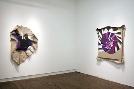 The artist is included in the new Phaidon publication Painting Abstraction: New Elements in Abstract Painting by Bob Nickas. Regarding the work Nickas writes "Consider [Fisher's] work as it hangs in the gallery: the painted surface, the color, the hard edge of the image, the straight edge of the stretcher, and the irregular folds of linen. Our gaze moves from the flatness of the wall to the contours of the draped material to the flatness of the painting's surface. Here, the entire painting is the object, but with heightened contrast. There is play between the smooth surface of color at the service of the image and its geometry, while the color on the linen folds may appear stained or to have bled. The lushness of the paint is juxtaposed with rough areas of unpainted linen. There is the hardness of the image and the softness of the material it's been painted on. Finally there is the structural integrity of the image and the fragility of the object on which it has been set to rest. Duality is ever-present in Fisher's work. It is elegant and awkward, formal and deformed, hard and soft, painted and unpainted, polished and raw, illusory and real."