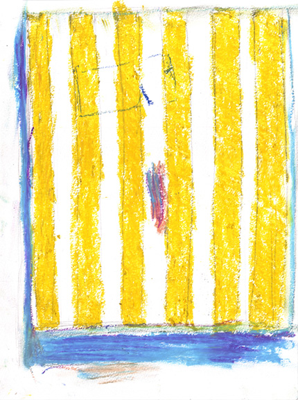 Tranchell's paintings are often near monochromes, partially raw canvases or uniform vertical stripes in two colors. They at times make use of the same product stickers used in the collages, but solid coats of paint are built up until through plan or by happenstance some variation develops. The color from one canvas is carried to another by the use of the same brush or the leftover palette. They are almost never predetermined and often contain literal remnants, accruing dust and debris,of the studio where they were constructed. Their composition, like the collages and coin rubbings are both arbitrary and restricted, while his use of a casual abstraction draws attention to the processes of painting and the decisions that factor into making something unique.