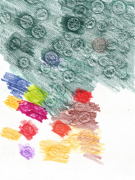 Similarly, a series of drawings, documents collections of loose change by creating pencil rubbings of the coins on newsprint. The resulting record, titled with the monetary value, such as "42 cents" calls attention to the physicality, mass production and symbolism of these often overlooked daily tools of economics, elements of our daily lives.