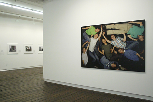 On view at the gallery will be a series of color portraits of the Zivis (as they chose to be portrayed) accompanied by fictional autobiographies they wrote as one of Thauberger's exercises, a large group portrait of the young men "boxed in" by the pictures parameters (designed for the cover of a catalog documenting the project) and a black & white image of the empty set. Projected In a separate room will be an 18-minute video of the Zivis performing the series of postures they choreographed to portray a narrative arc of isolation, despair, idealism, co-operation, betrayal and endurance, using themselves as the protagonists.