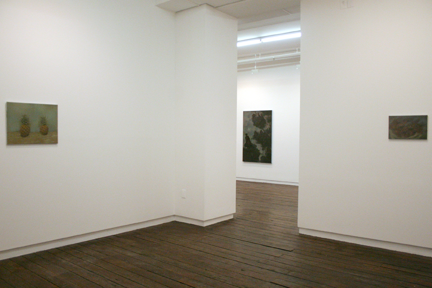 While decrepit cities like Venice and Rome were revived and converted into meccas of tourism by a Victorian appetite for the lost world of the ancients, an entire genre of parlor painting was being created to capture and bring home evidence of the empire's expanded frontiers. A contemporary series of monkey (macaque) paintings by Wetzel find their genesis in a parlor genre of Dutch origin, practiced by Gillis Claesz de Hondecoeter for one, that found its way into the English and French Empires. These works crammed as much exotic flora and fauna as possible into a precursor of the photographic postcard. Here the monkey's look out at us and serve as a sudden and expectant mirror between the civilized and the savage, the origin of Darwinian theory and the attendant religious discomfort of its implications. There is an intricacy in the layered manner that Wetzel molds his forms with pigment and light. The color is almost woven in its application, a reminder of the woven surface of linen and wall hangings, a lesser and more decorative form of parlor art. This challenges the pretensions of ‘painting’ reminding us of the vanity of collectables while simultaneously critiquing the imbedded function of accumulating wealth.