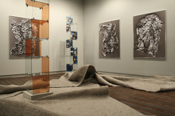 The Long Goodbye, Jonah Freeman and Michael Phelan's second solo collaborative exhibition, continues the artists' concern with the 'contemporary landscape' and America's absorption and perversion of both Occidental and Eastern historical modes and models. The exhibition includes mundane and disparate icons of consumerism such as disposable aluminum foil, synthetic carpet padding and ready-made glass display systems. Also included is a rambling testimonial on personal and financial failure found on the internet after googling the fortune cookie proverb "the two hardest things in life are success and failure." Freeman/Phelan present these seemingly everyday/ ordinary objects with an eye towards both art history and the legacy of Middle America ‘life-styling’ within a postmodern aestheticized landscape. Their appropriations and re-contextualizations create objects that typically blend seamlessly into the field of the commercial contemporary landscape and blur the distinction between high and low while continuously questioning the viewer’s definition and expectation of what one may consider traditional Fine Art.