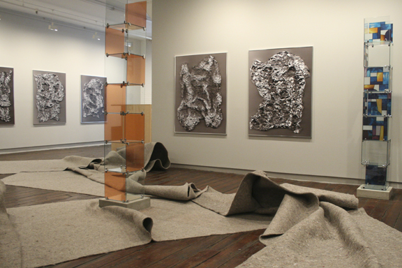 The Long Goodbye, Jonah Freeman and Michael Phelan's second solo collaborative exhibition, continues the artists' concern with the 'contemporary landscape' and America's absorption and perversion of both Occidental and Eastern historical modes and models. The exhibition includes mundane and disparate icons of consumerism such as disposable aluminum foil, synthetic carpet padding and ready-made glass display systems. Also included is a rambling testimonial on personal and financial failure found on the internet after googling the fortune cookie proverb "the two hardest things in life are success and failure." Freeman/Phelan present these seemingly everyday/ ordinary objects with an eye towards both art history and the legacy of Middle America ‘life-styling’ within a postmodern aestheticized landscape. Their appropriations and re-contextualizations create objects that typically blend seamlessly into the field of the commercial contemporary landscape and blur the distinction between high and low while continuously questioning the viewer’s definition and expectation of what one may consider traditional Fine Art.