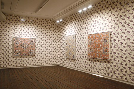 KH: I do think that there is a psycho-sexual undertow in my imagery that is reflected through these fetishistic, otherworldly-like vignettes. However, for me these stories represent more of a sense of yearning and desire than they do strict memory recollections. The narratives allude to the ethical and moral boundaries of pleasure and the parallels between gratification and pain. Everyone has differing thresholds and needs to satisfy; some like tying people up in their basements while wearing their mother’s clothing, others find satisfaction in having sexual relations with animals. My earlier work on the toile fabric most strongly depicts these conflicts between domination/submission and command/obedience. The idea of dominating objects of desire, which have historically been women, boys, and slaves, becomes jumbled into psychotic delusions, where sheep dominate young boys and women wearing masks control each other.