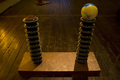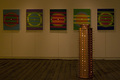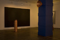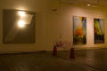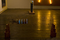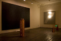 The sculptures in this exhibition are fictional components of the particle accelerator. Fabricated from found objects, arranged and manipulated through the use of copper paint and assemblage the sculptures are akin to props from a Sci-Fi film. The paintings, created using spray paint, acrylic, on canvas and chipboard, and sometimes embellished by light fixtures, draw from notions and representations of the afterlife, subatomic particles and Dark Matter. These works are influenced by modernists such as Helen Frankenthaler, Mark Rothko, Bart van der Leck and Ad Reinhardt and suggest Samson’s wish is to return a stylistic minimalism to its mystical roots.