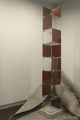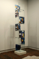 Freeman/Phelan's interest in appropriating domestic architectural/ functional signifiers that are both alluring and practical can be seen in their series of 'totems' or 'monuments’ comprised of glass, chrome and acrylic gels. The sculptures, made from display systems that have been reconfigured into dysfunctional quasi-monumental structures are stacked on compact concrete slabs and reflect a nod to the evolution of the minimalist vernacular (Sol Lewitt, Donald Judd). The gels that decorate them, gleaned from web sites geared towards home decoration, superimpose a fantasy upon the objects with themes like stained glass, ice crystals and precious rock. The titles such as Eastern Plain (roaming narrator), Prodigy (roundtable) and On golf (honey oakwood), borrow a style of language used in the description of lifestyle consumer goods, a style that attempts to take banal objects out of the mundane and into the realm of illusion.